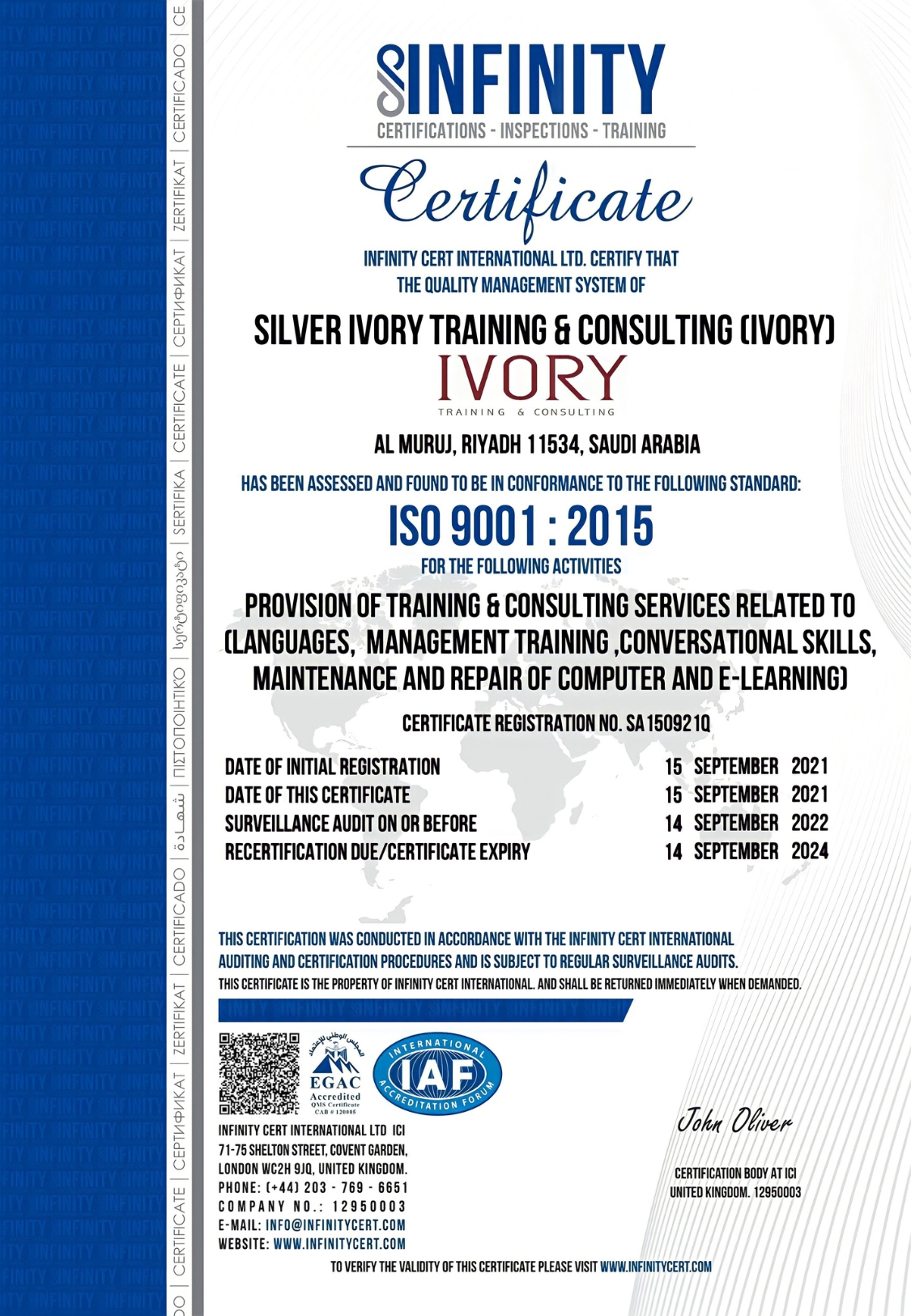 تسعي ايفوري للتدريب والاستشارات لتحقيق مستوي عالي من التميز في برامجها التدريبية ضمن اليات عمل دقيقة وأولويات محدده ينم عن فهم دقيق لتوقعات العملاء والتصرف وفقا لالك.