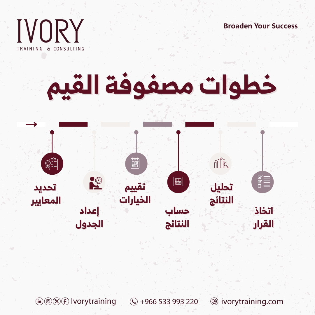 تساعد مصفوفة القيم في تنظيم وترتيب البيانات والمعلومات المتعلقة بالخيارات المتاحة. وتوفر نظرة شاملة ومنهجية للمعايير والخيارات، مما يسهل فهمها ومقارنتها.